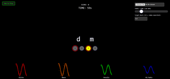 - Press both letters at the same time in sync with the music & targeted beat to score 50 points
